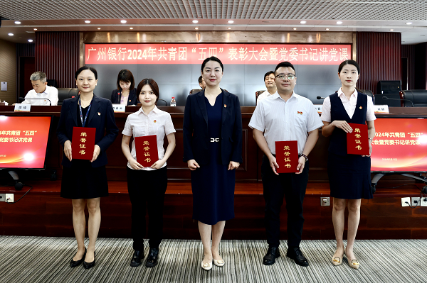会议在庄严的国歌声中拉开帷幕。党委副书记李春元宣读了2023-2024年度广州银行共青团优秀个人及集体的表彰通报。本次大会共表彰了广州银行优秀共青团员8名、优秀共青团干部5名、青年岗位能手5名、五四红旗团支部2个、五四红旗团总支部1个。与会领导对受表彰的个人及集体颁发了荣誉证书,勉励大家珍惜荣誉、再接再厉,继续发挥先锋模范作用。